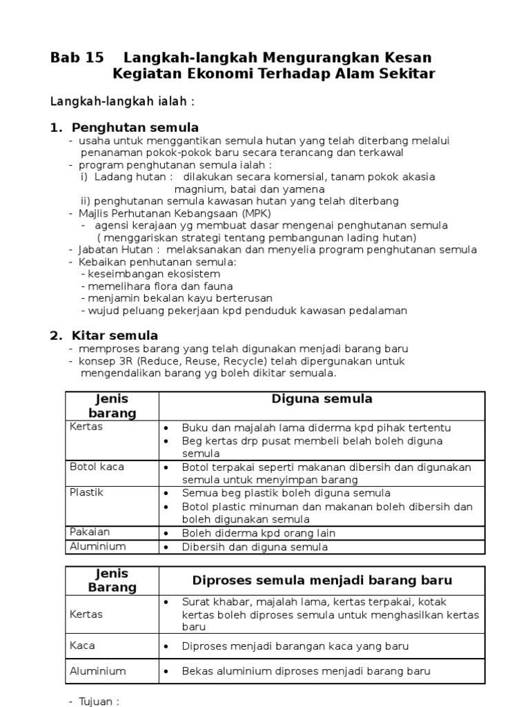 Langkah Langkah Mengurangkan Kesan Kegiatan Ekonomi Pdf