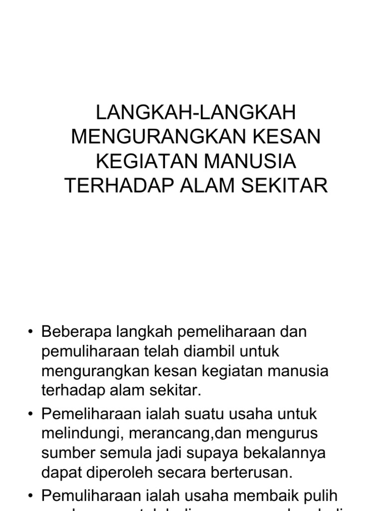 Langkah Langkah Mengurangkan Kesan Kegiatan Manusia Terhadap Alam Sekitar Pdf