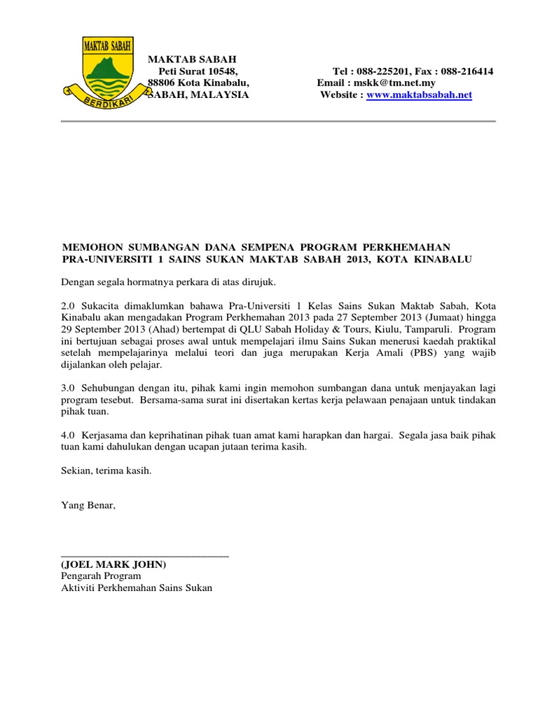 Dengan segala hormatnyaperkara di atas dirujuk. Segala sumbangan yang dihulurkan kami amatlah kami hargai dan didahulukan dengan ucapan jutaan terima kasih. Dengan hormatnya perkara di atas dirujuk.